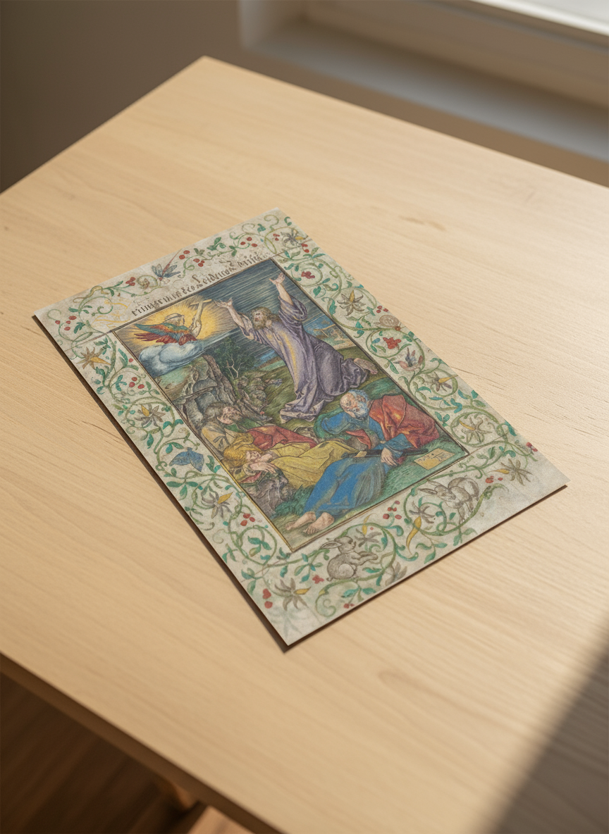 The engraving emphasises both human vulnerability and divine presence. Dürer’s precise lines convey delicate gestures and expressions, while Mack’s reinterpretation enriches the composition with additional texture and depth. The result is a work that transforms a devotional scene into a profound meditation on transcendence, emotion, and the human experience.