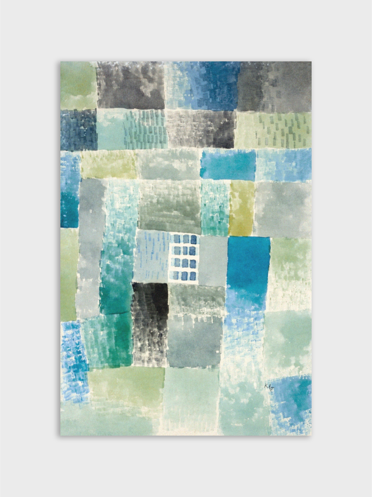 This piece reflects a key moment in early Modernism and the Bauhaus movement. The illustration demonstrates how artists began simplifying landscapes and architecture into symbolic, elemental forms. Klee used geometry and playful, innocent lines to explore presence and space, transforming ordinary structures into visual symbols of settlement and community.