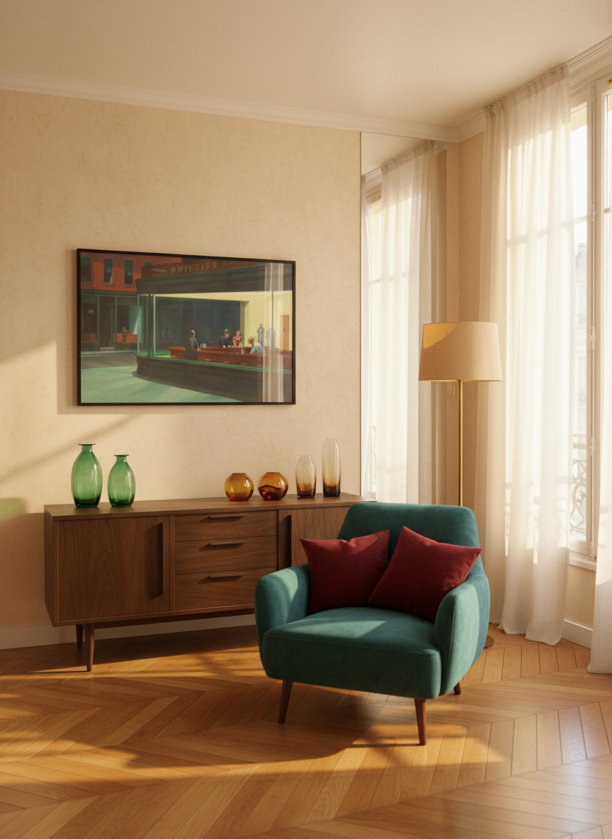 We connect museum-worthy art with real homes. These are reproduction prints, but not the flimsy kind; our older prints are professionally digitised and printed on museum-quality matte paper. We capture every brushstroke, every shade, down to the tiniest detail. The tech behind it is top-notch, so what you see on your wall is as close as it gets to the real deal. But don’t panic, bringing one home won’t cost an arm and a leg.