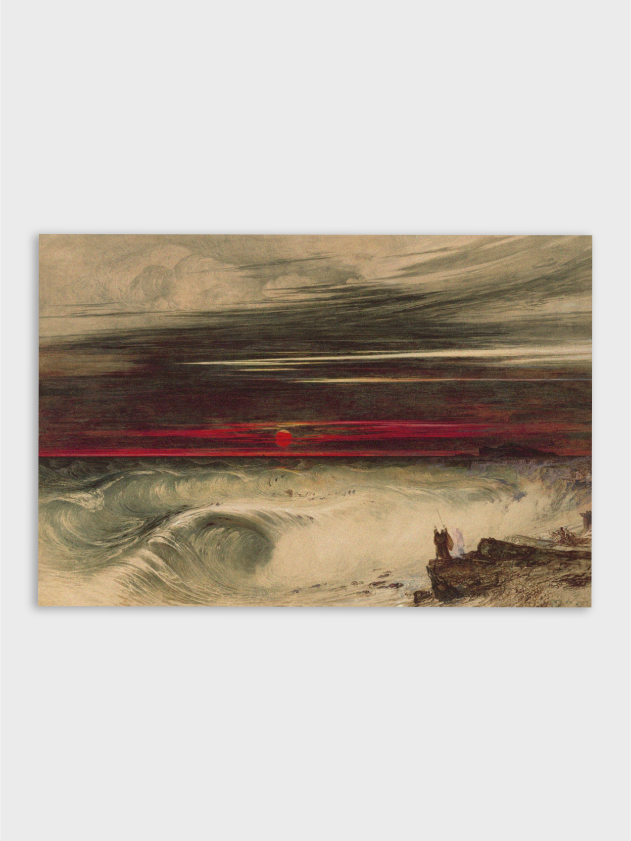 A quintessential work of British Romanticism, this piece embodies John Martin’s mastery of the sublime and the apocalyptic. It depicts the moment the Red Sea closes over the Egyptian army in a sweeping display of divine power, marking the dramatic conclusion of the biblical story found in Exodus 14. It brings the epic grandeur of 19th-century imagination, with its stirring vision of faith, fury, and transcendence.
