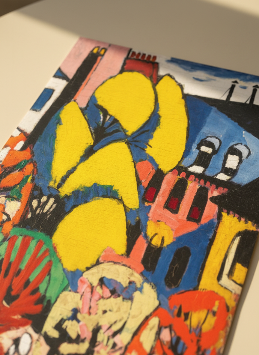 After studying under Henri Matisse in Paris, American modernist painter and engineer Henry Lyman Sayen created this brilliant oil on canvas. It is a prime example of his involvement with European avant-garde movements like Fauvism and Cubism. The painting stands out for its dynamic composition and vivid, expressive colour scheme.